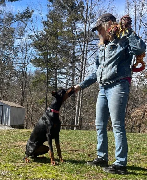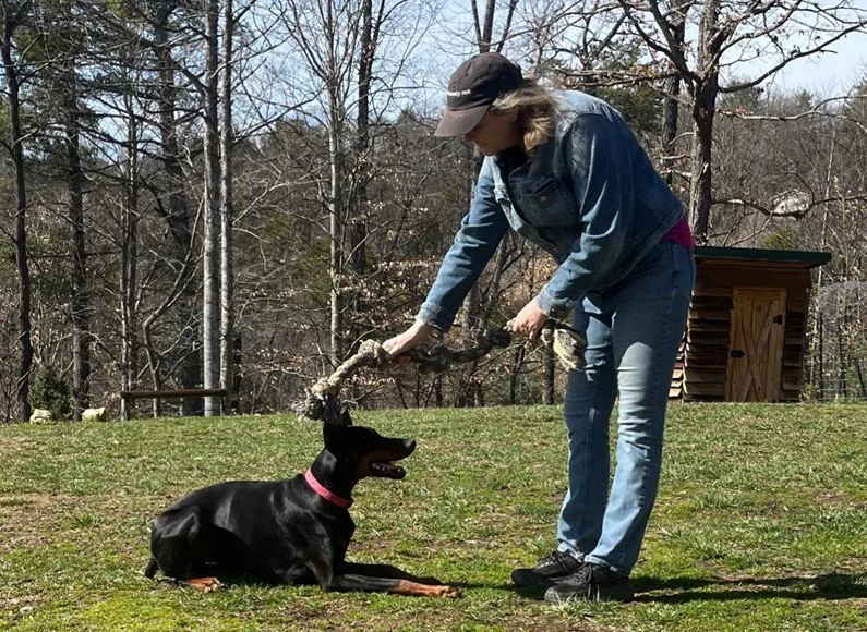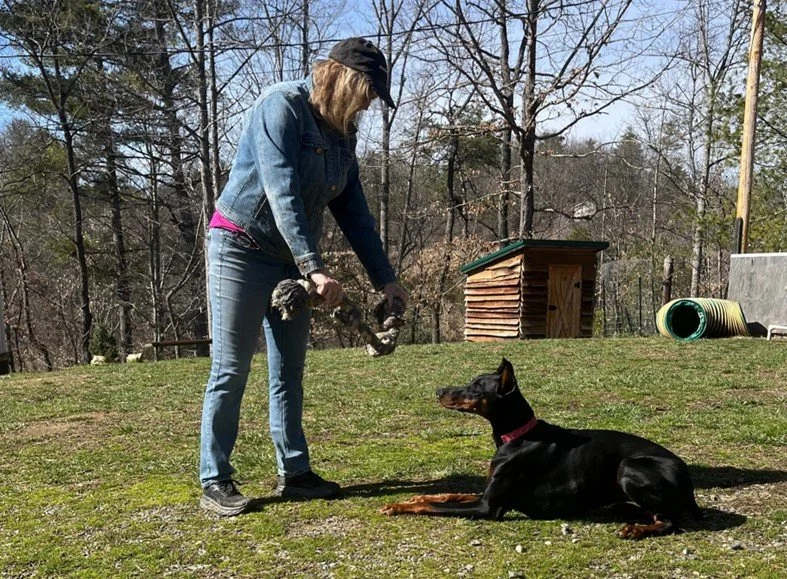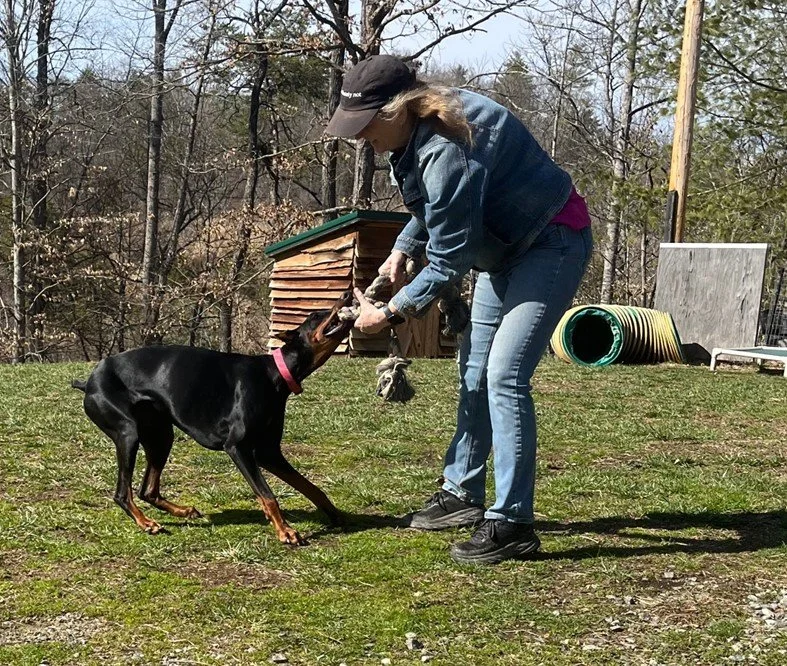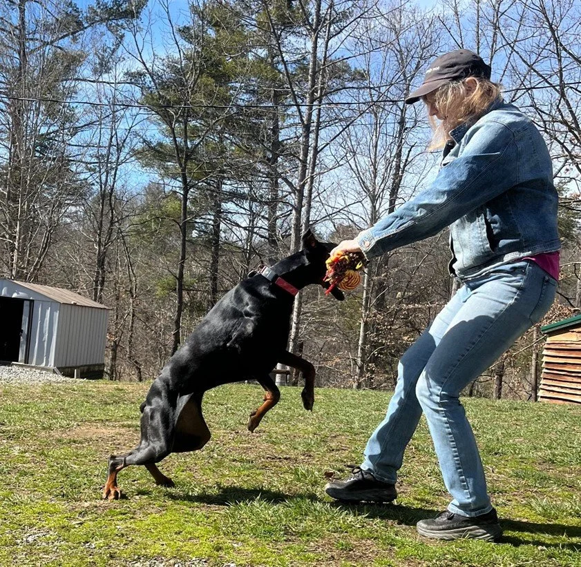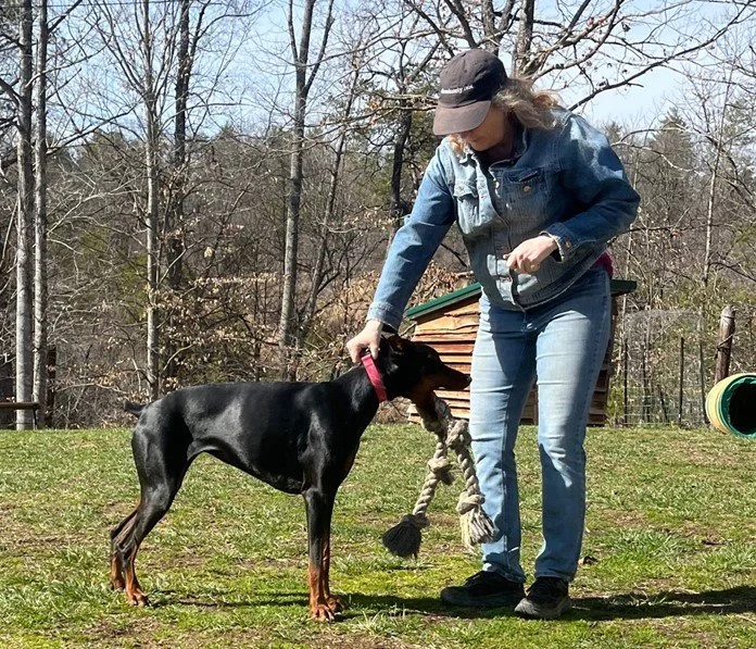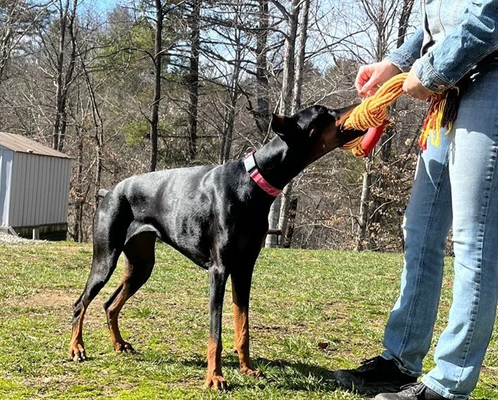 Iris the Doberman, from Tampa Bay Humane, learns tug to help with impulse control